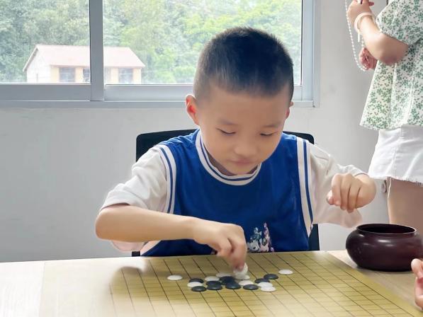 圖為實踐隊為孩子們開展興趣活動,教孩子們下棋。宋雨達攝