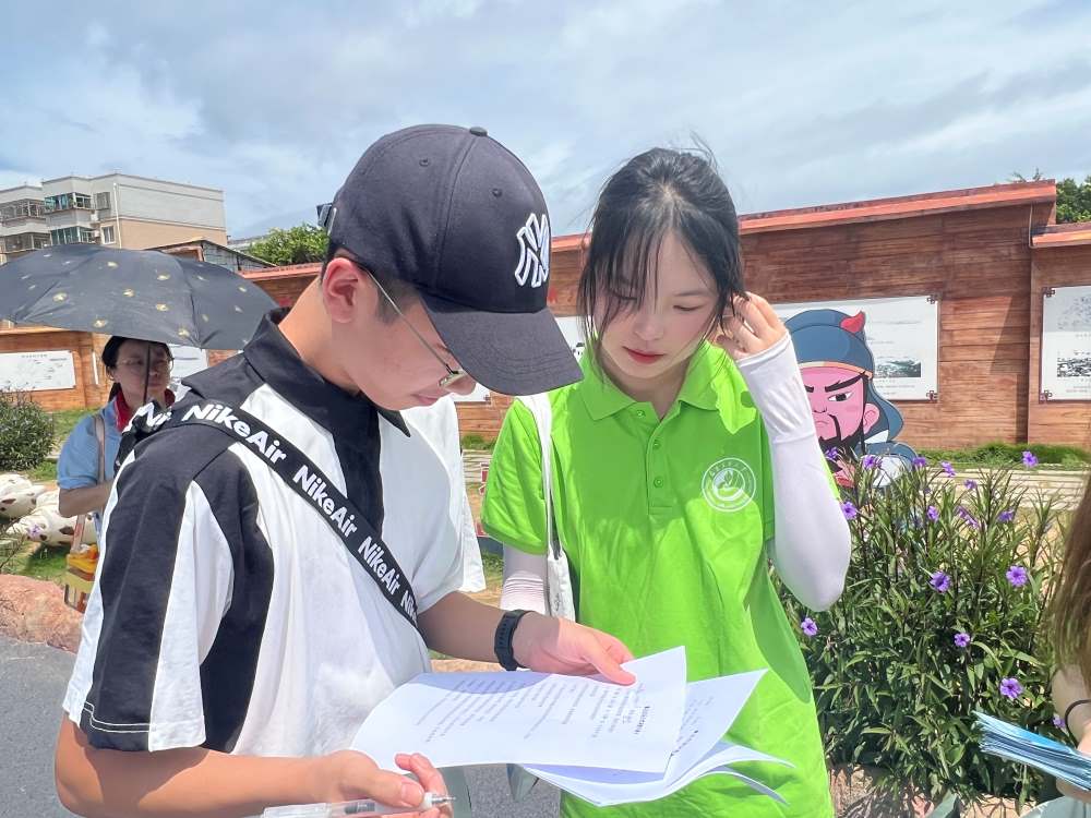 圖為東山游客在南門灣景區填寫垃圾分類調查問卷