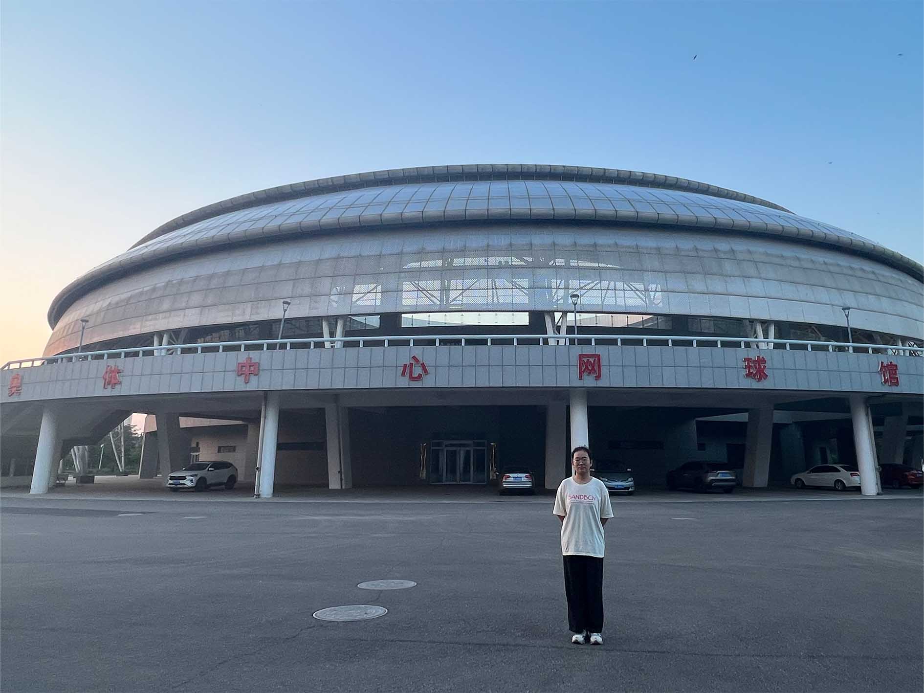 圖為實踐隊員在東營市奧體全民健身中心網球館前。