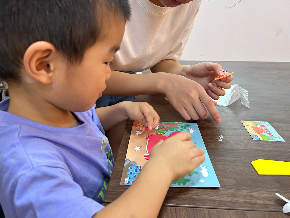 圖為小老師帶領(lǐng)小朋友進(jìn)行手工制作。熊姝然 攝