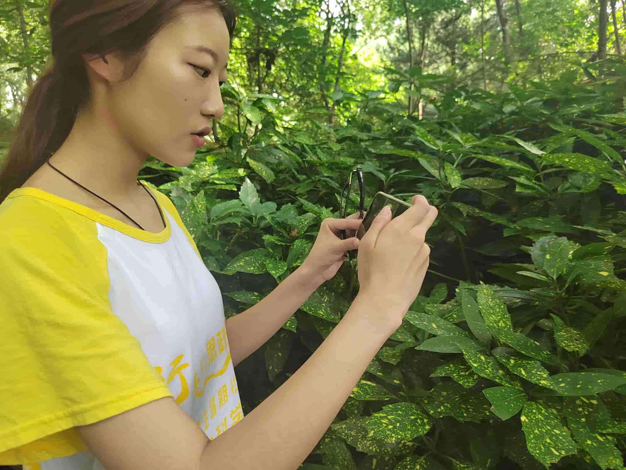 圖為團隊成員拍攝記錄植物種屬和生境。多彩大學生網通訊員 史燕艷 攝