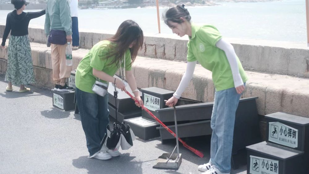 在發展的同時,要同時注重環境效益,秉持著人與自然和諧共生的理念,實踐隊不僅發放了有關于環境保護的文創、宣傳冊,以及收集有關環境保護的調查問卷,進一步了解人們環境保護意識,而且通過開展宣講會、打掃景區垃圾等實際行動推動綠色發展。