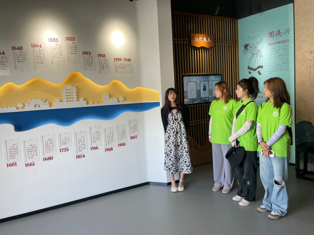圖為實踐隊隊員在認真聽講解員講述銅陵大事記