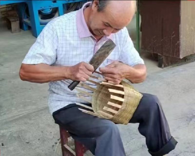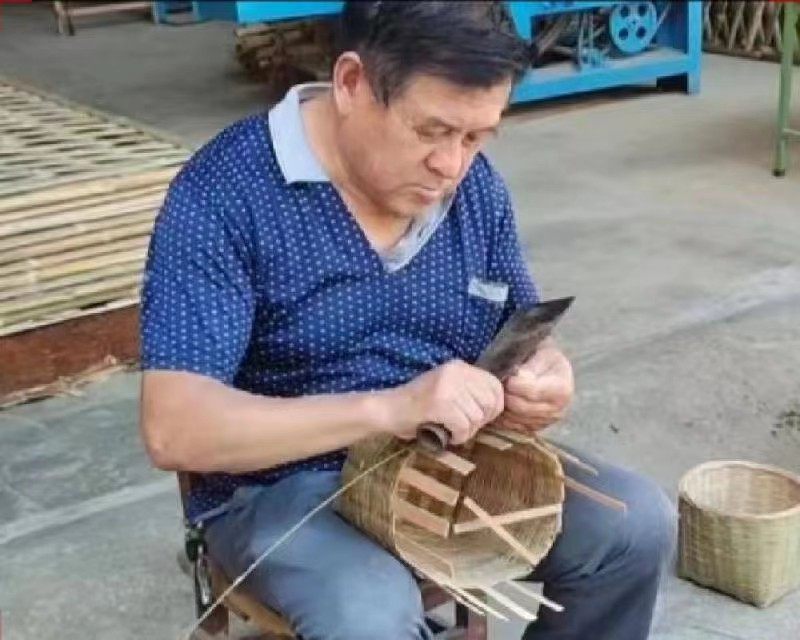 與此同時,外間是進行竹編的老人。其中,63歲高齡的王業陽老先生正坐在凳子上進行竹編工藝,詢問才知他是18年開始學習的竹編,迄今已有五年,曾是一名木匠,而木與竹不同,木匠和竹編的轉換并不容易,同為手工從業者,木匠對竹編的貢獻有限,依舊需要從頭學習,直到學會竹編更換此份工作。