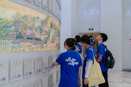 實踐隊走進道路寬闊、樓宇林立的園區,走過充滿城市記憶的縉云工業展示館與彰顯縉云智造的特色工業產品互動體驗區,走過整齊陳列各種不同型號明星產品的天喜廚電成品館與數智交融的研究院,隊員們驚嘆于這里的時代感、科技感與創新感。