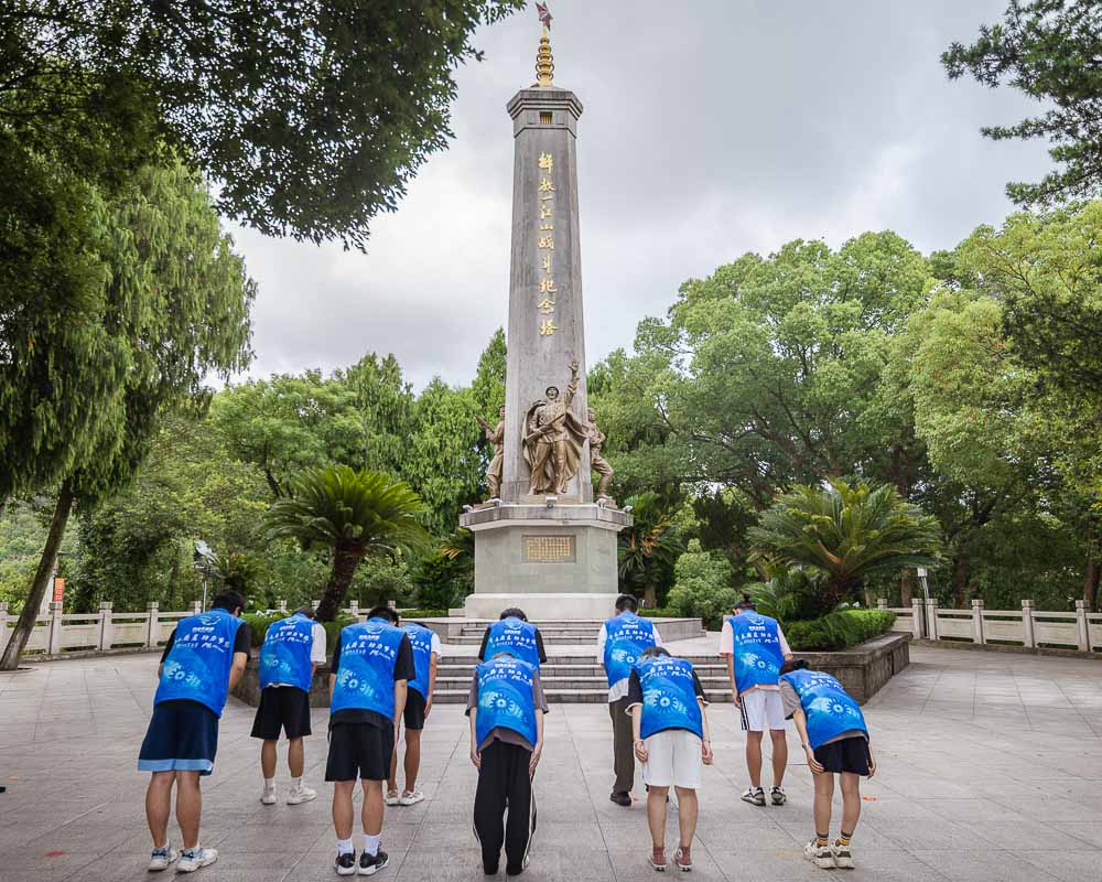 實踐隊探訪一江山島登陸紀念館,發揚崇尚英雄、緬懷先烈的良好風尚。在那里,實踐隊各成員心懷敬仰,賡續革命精神。一場戰役,一座豐碑,鑄就的卻是不朽的精神。紀念館里滿墻的老照片,代表著一個個難以忘卻的故事,代表著那沉甸甸的歷史勛章。那些照片承載著先烈執著、拼搏、視死如歸的“一江山精神”,正是因為有著這股精神才鑄就了現如今美好的生活。雖然歷史的車輪滾滾向前,但逝去的是硝煙,不滅的則是精神。“一江山島紀念館”并非只是一座單純的紀念館,更是先輩們用熱血與生命所鑄就的紅色傳承。紀念碑下,浮雕像前,蔚藍實踐隊獻上崇高敬意,共鳴革命精神。