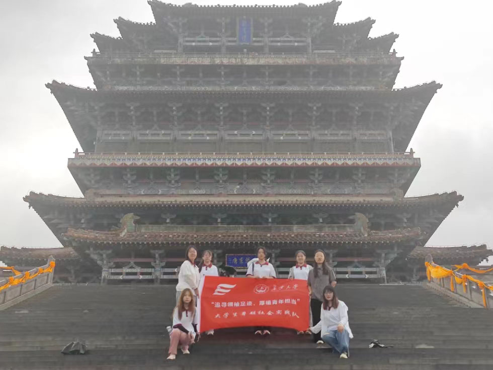 圖為實踐隊伍在鸛雀樓前的合影圖為實踐隊員聆聽講解
