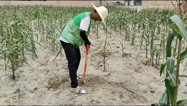 活動過程中他們帶著專業儀器和工具準備進行土壤采樣。有土鏟和小平鏟,密封袋等。利用對角線布點法,確定好采樣的深度,取樣深度為0~20cm。他們將采樣點分布在不同海拔高度和土地類型的區域,并詳細記錄每個點位的土質和海拔高度。通過這種方式,他們希望能夠全面了解該地區土壤的特性。以便于綜合確定栽種的作物。