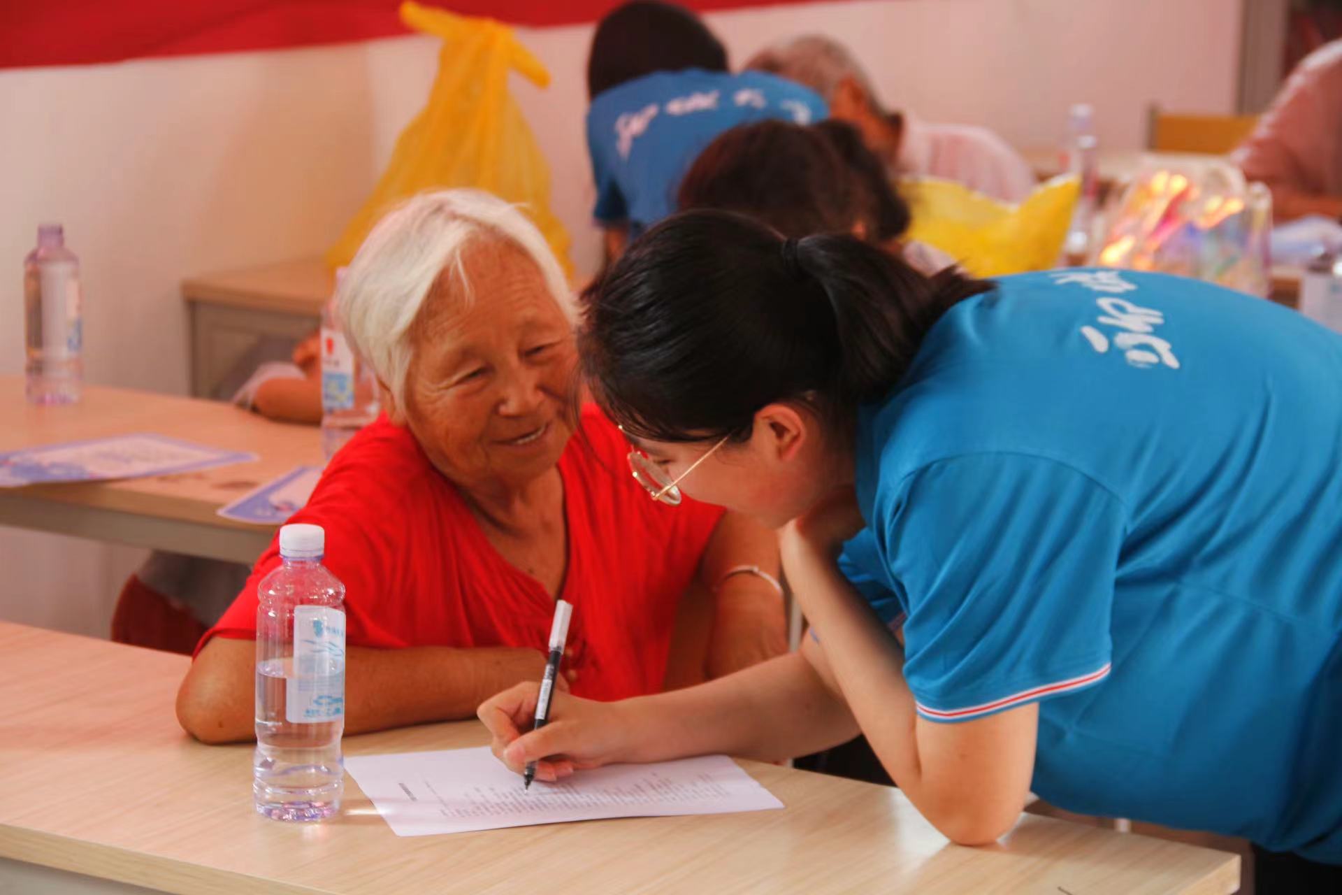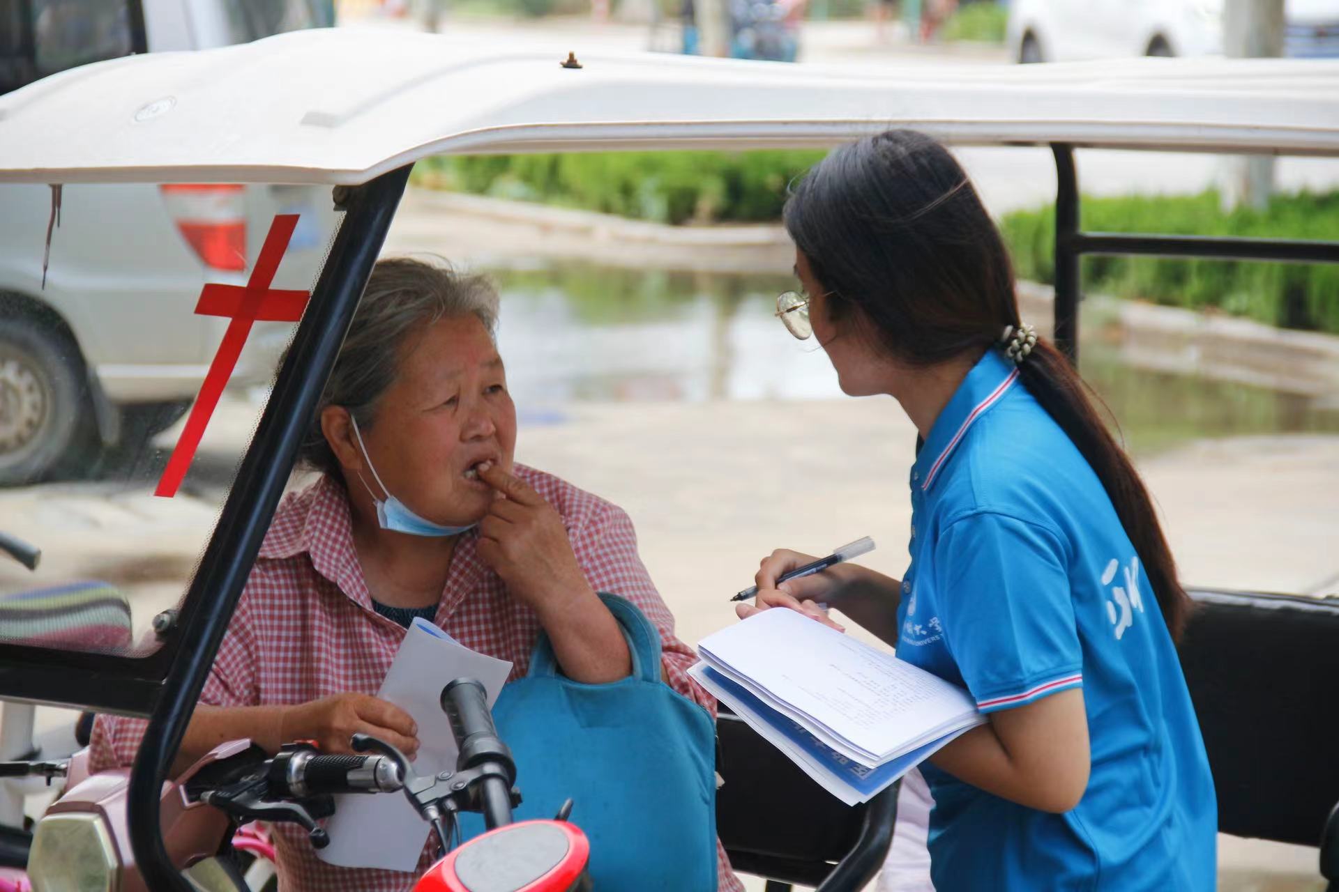 圖為志愿者向當地村民發放口腔健康調查問卷。魏高碩 攝