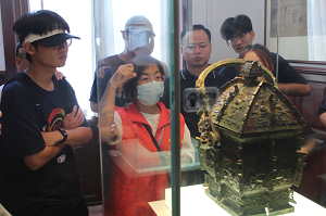 圖為講解員為大家介紹鎮館之寶——義方彝