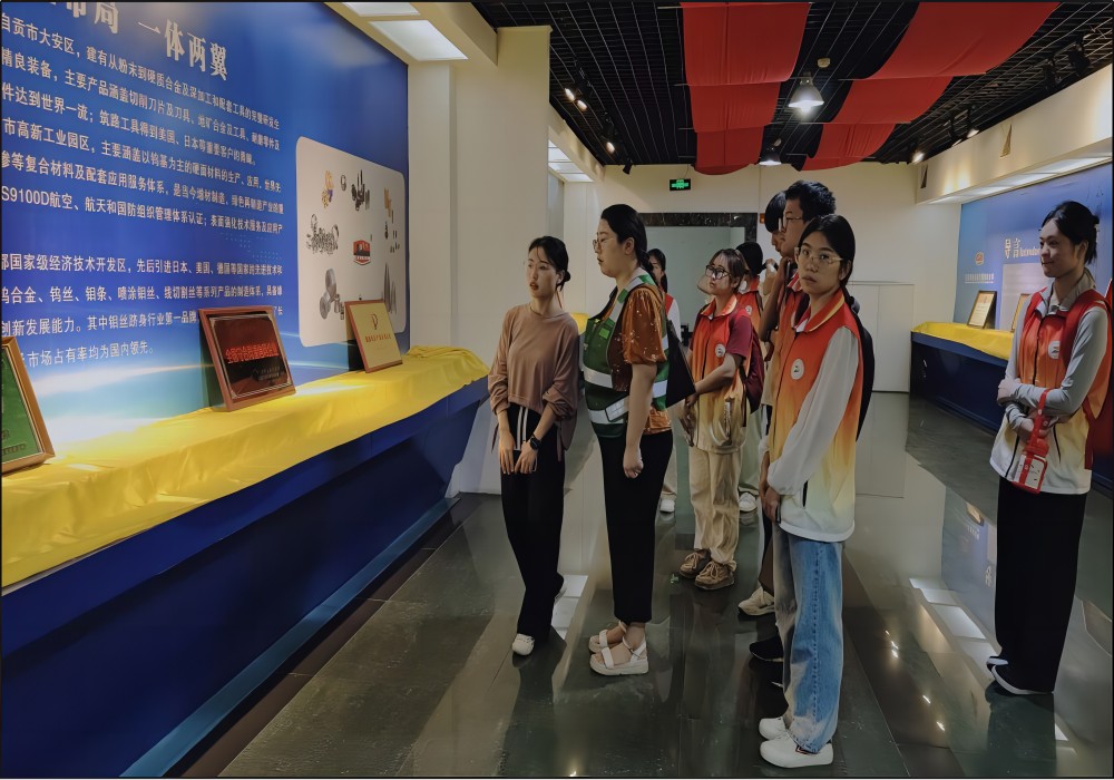 為深入貫徹學習習近平新時代中國特色社會主義思想和黨的二十大精神,做一名有理想、有擔當?shù)那嗄辏窇浫崢嶸歲月·繼承弘揚三線精神。2023年7月14日上午,四川衛(wèi)生康復職業(yè)學院三線建設傳承者團隊來到了自貢硬質合金廠(簡稱:硬質合金廠),由硬質合金劉美娟職工為團隊介紹硬質合金廠的歷史。