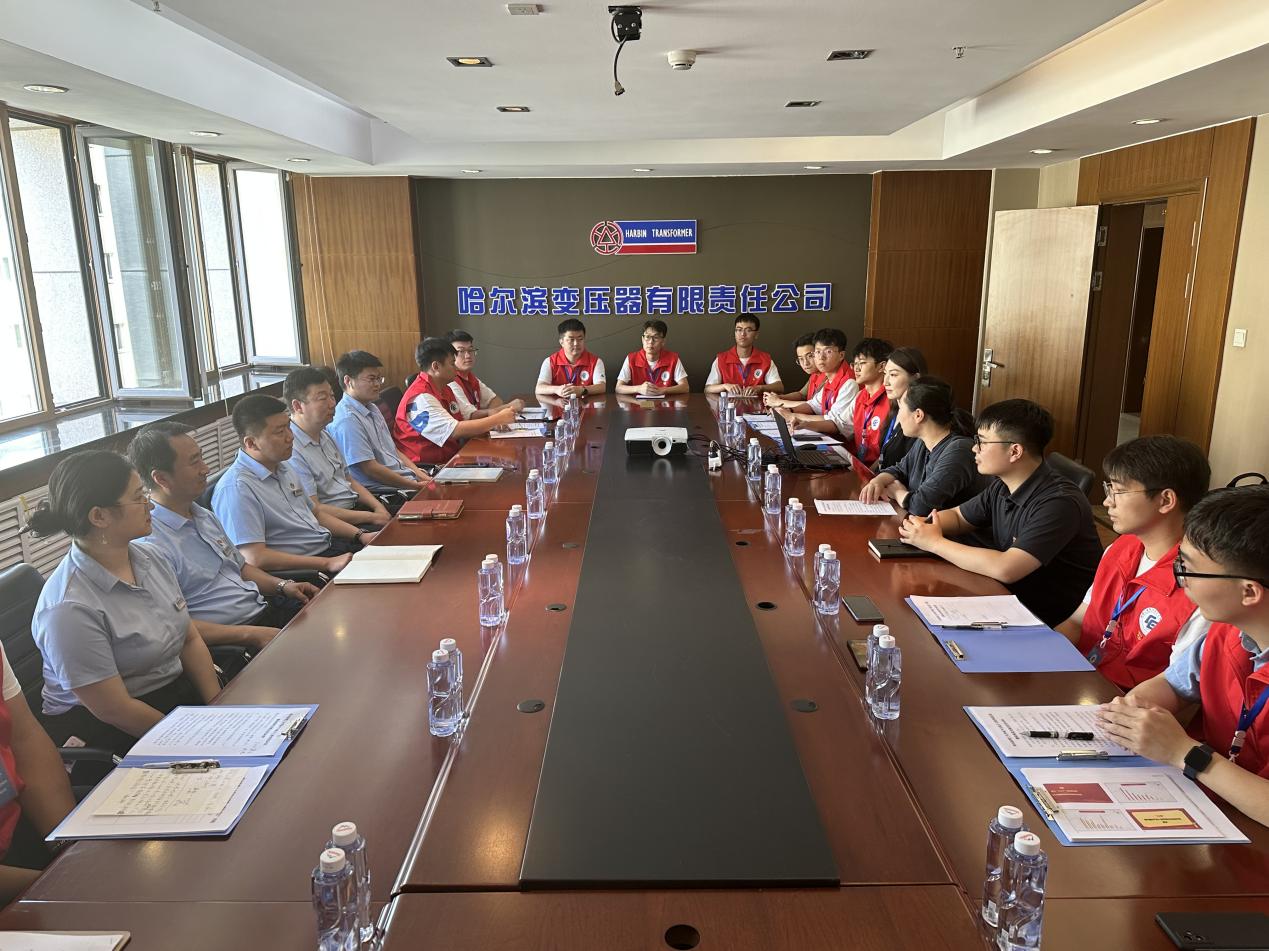 為深入開展學習貫徹習近平新時代中國特色社會主義思想主題教育,落實黨中央、國務院關于高校畢業生就業工作決策部署,進一步加強校企合作,拓寬畢業生就業渠道,加深畢業生校地情緣,促進畢業生留省就業,服務龍江發展,7月13日,哈爾濱理工大學電氣學院“菁耘龍江”促留省就業實踐聯絡觀察團指導教師電氣學院黨委副書記、副院長張穎,學院團委副書記、研究生輔導員祖森以及團隊成員16人碩士研究生赴哈爾濱變壓器有限責任公司開展了“訪企拓崗促就業,菁耘龍江促發展”的暑期社會實踐活動。