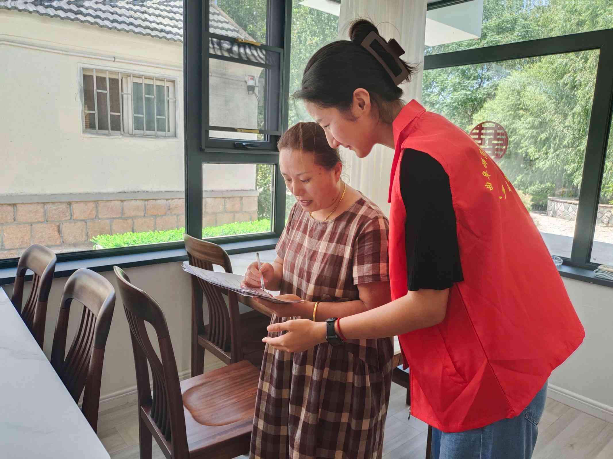 圖為實踐隊員正在請村民填寫調查問卷詢問相關問題。 劉智恒 供圖
