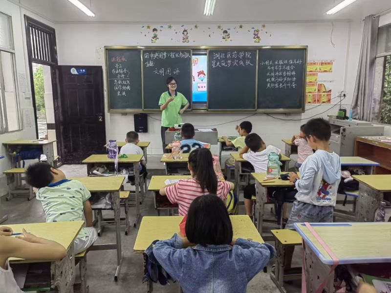 鮮衣怒馬少年時,不負韶華行且知。為深入貫徹新時代中國思想,大力弘揚奉獻、友愛、互助、進步的志愿服務理念和學習雷鋒,幫助他人、提升自己的能力。2023年7月9日,湖北醫藥學院星火筑夢社會實踐隊來到丹江口六里坪鎮蒿口小學開展為期14天的義務支教活動。7月26日,支教活動已順利結束。在活動期間,實踐隊開展了舞蹈,時事政治,走向全世界,手工課等在內的多種課程。旨在全面心系鄉村兒童成長,助力國家鄉村振興戰略。