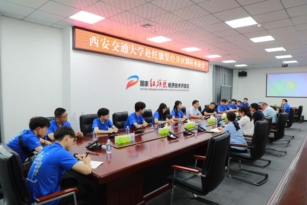 7月24日下午,西安交通大學師生赴紅旗渠經濟開發區開展社會實踐活動并推進校企合作工作。機械工程學院黨委組織員、團委書記包凱、團委副書記蘇宇帶隊,機械學院、能動學院、外國語學院以及生命學院等13名研究生參加活動。紅旗渠經濟開發區組織人社局局長李玉華、副局長劉敏等參加座談會和企業參觀活動。