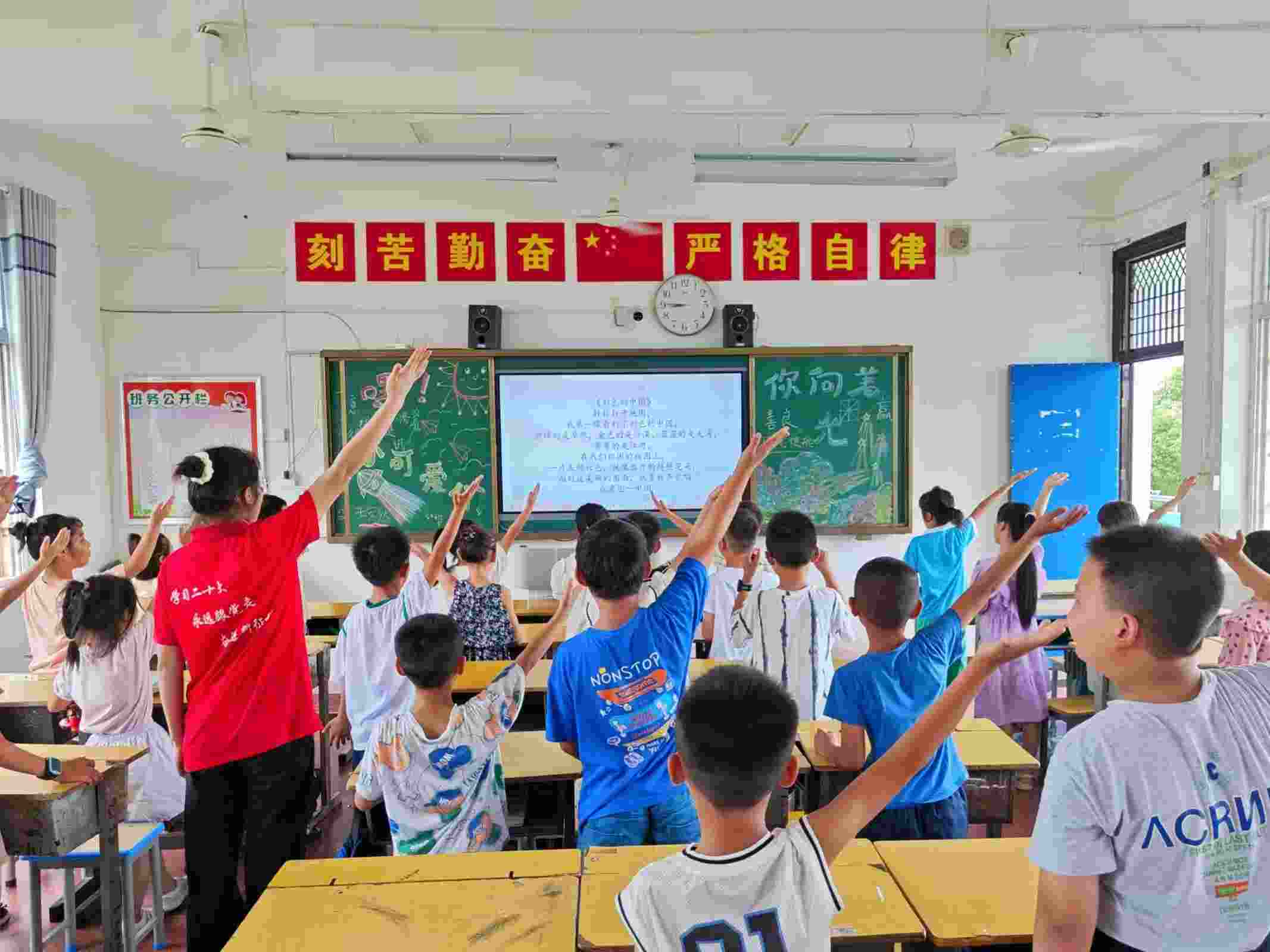 晨鐘旭日里,于童年中描摹出一份神韻,于暑期中梳理出一份詩意,2023年7月8日,赴池州市香隅鎮中學志愿服務隊的志愿者們帶領同學們進行了詩歌、短文誦讀。