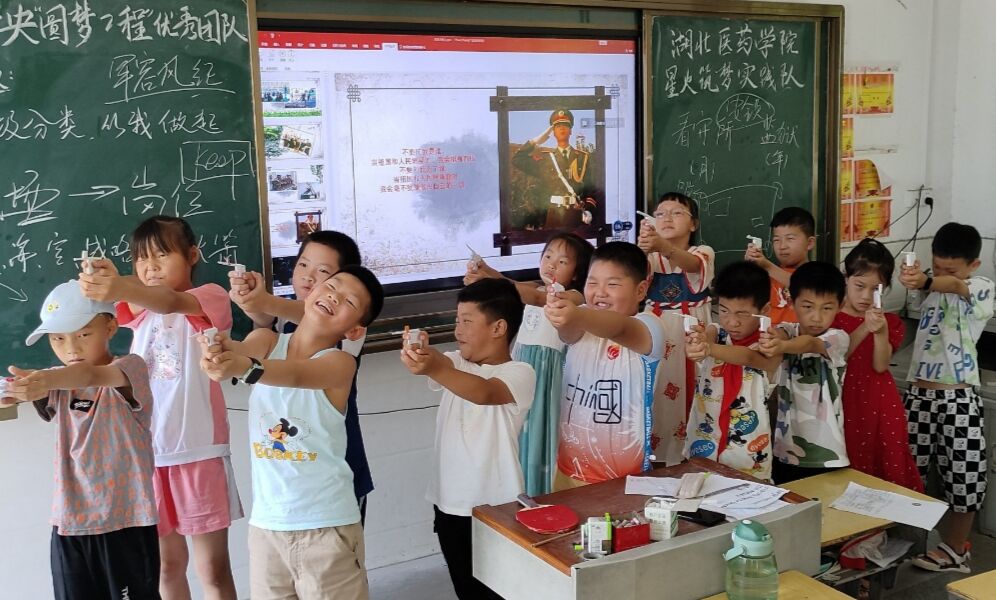 2023年7月8日,湖北醫(yī)藥學(xué)院“星火重聚,攜愛童行”暑期社會實(shí)踐隊(duì)在湖北省十堰市丹江口市六里坪鎮(zhèn)蒿口小學(xué)開展為期為14天的支教實(shí)踐活動。為了學(xué)習(xí)貫徹二十大精神,弘揚(yáng)優(yōu)秀傳統(tǒng)文化,志愿隊(duì)開展了武當(dāng)文化,軍旅文化和紅色文化等文化科普課程,手工,繪畫,舞蹈和音樂等藝術(shù)類課程,急救知識和醫(yī)學(xué)知識等醫(yī)學(xué)類知識課程,旨在陪伴學(xué)生們度一個有歡笑,有驚喜,有感動的七彩假期。