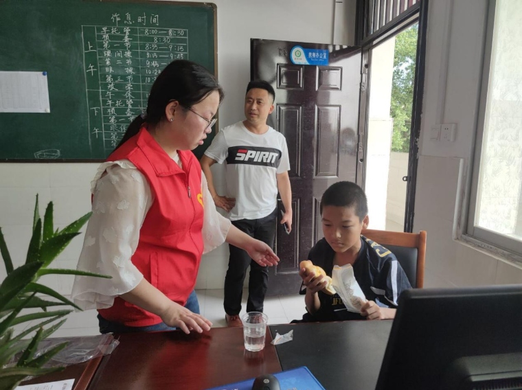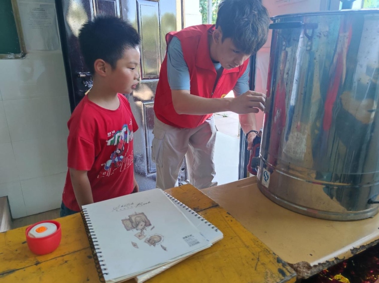 圖為松松老師為孩子們接水場景。 通訊員 陳欣榮 供圖