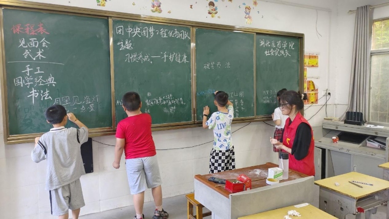 為深入貫徹黨的二十大精神以及習近平新時代中國特色社會主義思想,大力弘揚學習雷鋒、服務他人、提升自己的志愿服務精神,湖北醫藥學院星火筑夢暑期社會實踐隊來到十堰市丹江口市六里坪鎮蒿口村蒿口小學開展為期14天的社會實踐。7月9日是支教活動開展的第一天,今天的主要課程是手工,音樂,國學經典,詩歌,書法以及心理健康。志愿者們熱情滿滿,學生們興致勃勃,通過與學生互動、交流,建立起了深厚的師生關系,成為孩子們成長道路上的良師益友。