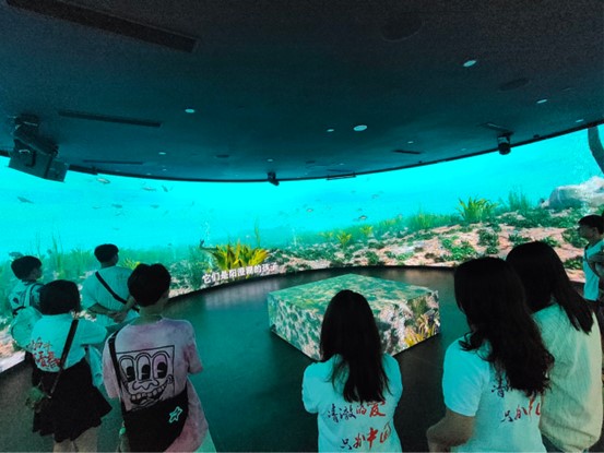 圖為實踐團成員觀看陽澄湖介紹影片