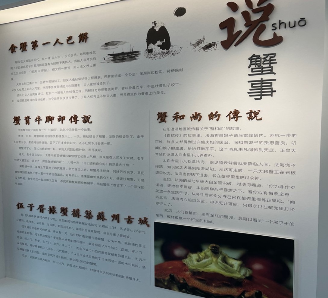 圖為實踐團成員參觀陽澄湖大閘蟹歷史傳說