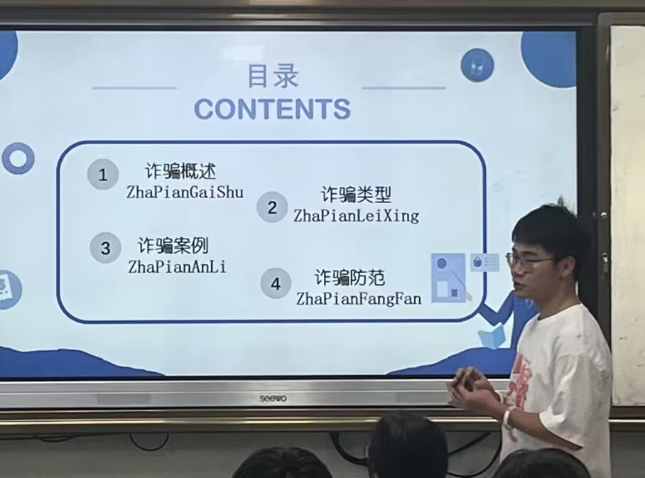 為幫助青少年提高反詐意識,掌握防范詐騙方法,2023年7月9日,宣講人董昊于山東省鄆城第一中學開展以防電信詐騙為主題的線下宣講活動,為同學們普及電信詐騙以及演變后新形勢電信詐騙相關信息,并總結出一套詐騙識別辦法,引發了同學們的深思與討論。同時,為促進青少年認知詐騙手段,練就“火眼金睛”,7月18日,宣講人夏鑫雨在河南省確山縣第一高級中學展開宣講,她通過理論講解結合現實經歷的方式,與同學們深入交流,了解危害,識別危險,宣講結束后,同學們表示,通過這次宣講活動,他們對詐騙有了更加清晰的認識,學到許多防騙的方法和措施,受益匪淺。防詐路長,宣講不止,7月22日,宣講人趙星皓來到陜西省漢中市鎮巴中學再次開展防詐主題宣講活動,他采用PPT形式講解,運用圖文結合的方式從四個方面闡釋詐騙的有關內容,鼓勵用理論與知識武裝自己,幫助同學們揭開了“詐騙”的真面目。在歷次宣講過程中,宣講人還為同學們分發了團隊設計宣傳手冊,進一步推進“全民反詐”局面的實現。