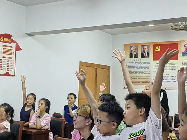 圖為小朋友在課上積極舉手踴躍回答。中國計(jì)量大學(xué)石鴻英攝。