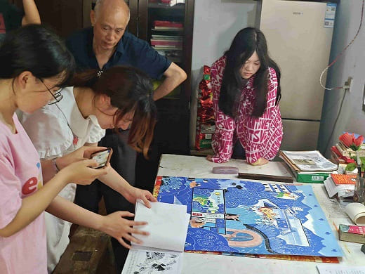 農民畫畫出致富路 五六歲便拿起畫筆的鄭根良,如今已成為余東農民畫家骨干之一,對畫畫的熱愛陪伴了其成長成人成才的各個階段。