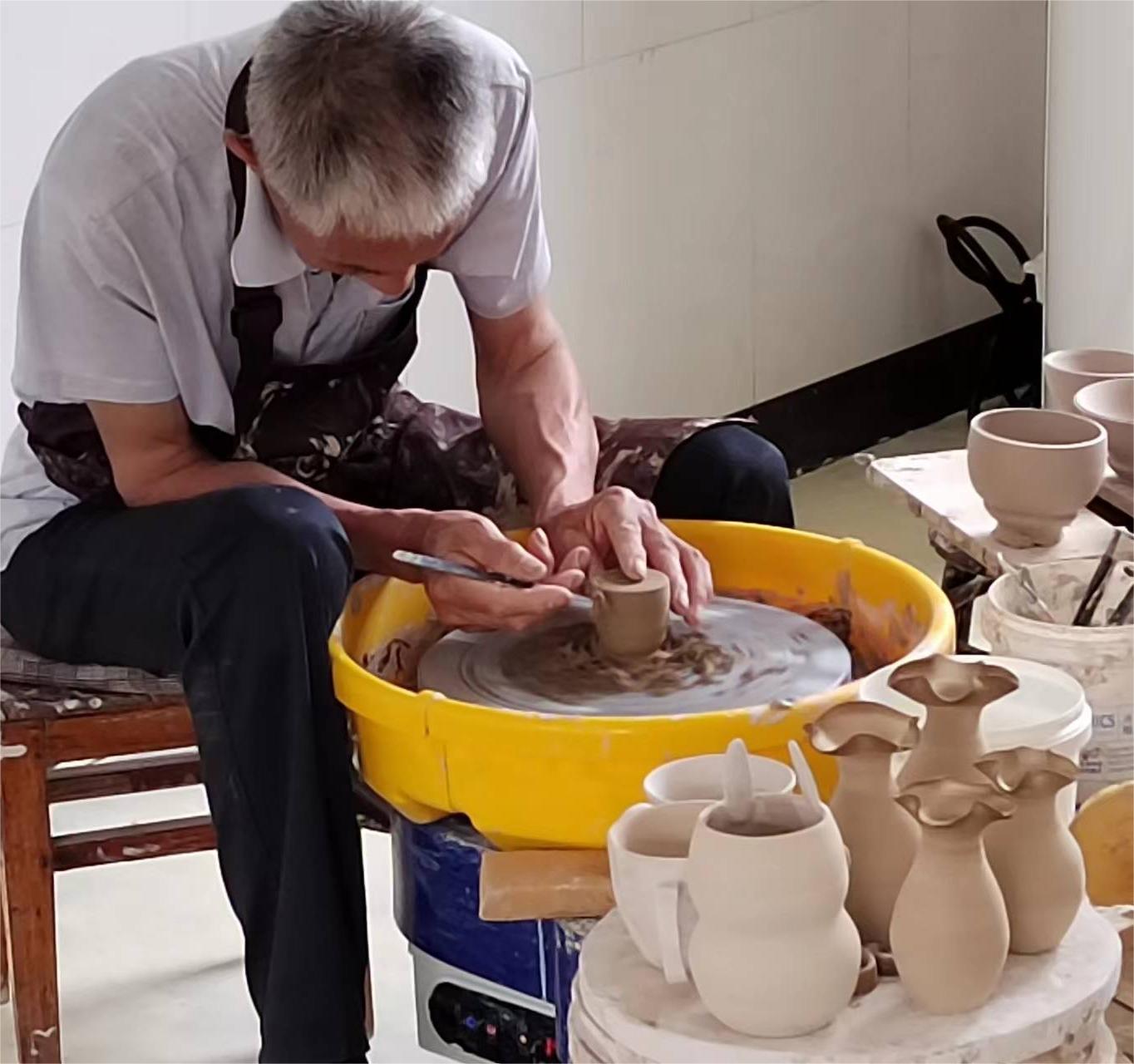 如今的碗窯村雖然回不到做碗的鼎盛時期,但曾三滿仍然可以每天與土碗相伴。在曾三滿陶藝工作室里,陳列著許多精美的陶藝作品,以及“柯城區鄉村手藝達人”的嘉獎。現在,有不少制瓷愛好者前來體驗,在工作室中擺放著游客剛剛制作完成的泥坯,新時代新形式的“碗”,不僅能讓曾三滿靠教游客制作陶藝來獲得收入,還能使他繼續接觸自己熱愛的土法制碗工藝。其對陶藝制作的熱愛,對傳統工藝的堅守,在新時代煥發出新光芒。