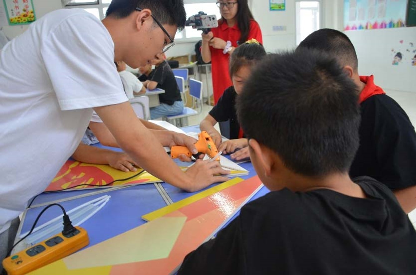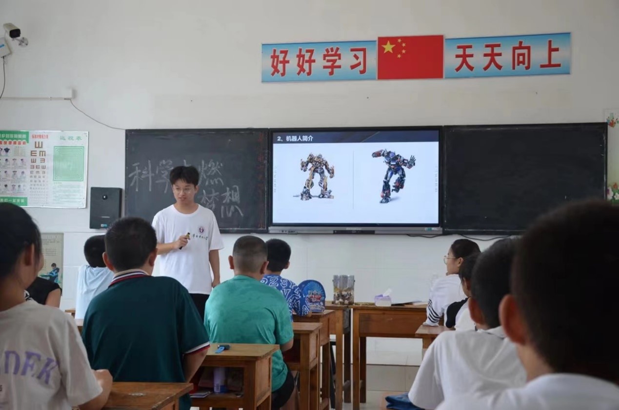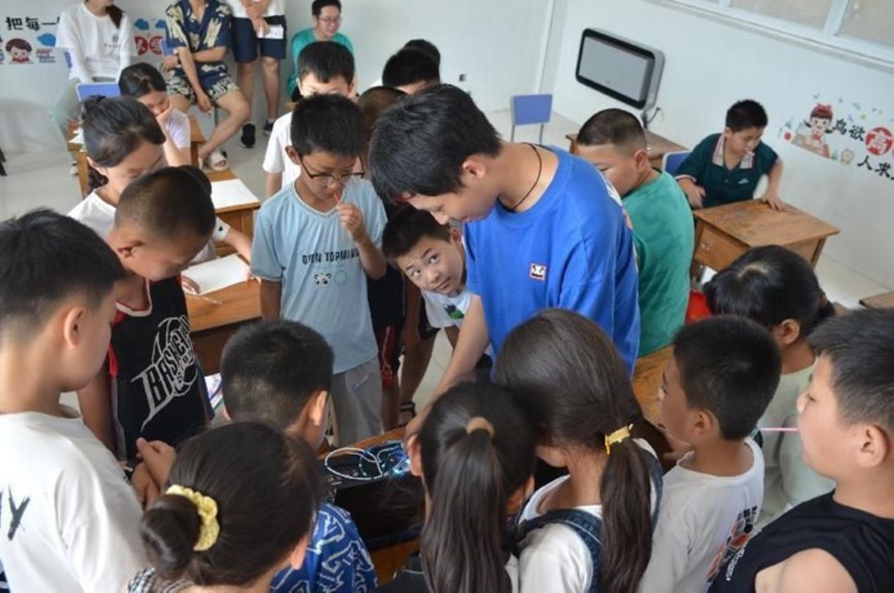 為助力鄉(xiāng)村振興,華北電力大學(xué)組織開展“情暖童心”暑期社會實踐活動,各實踐小分隊于7月9日分赴順平縣、阜平縣十所小學(xué),開啟了為期一周的支教之旅。其中,隊員們充分發(fā)揮和利用自身專業(yè)優(yōu)勢,特意設(shè)置了“科技筑夢”專題活動,努力提升小學(xué)生科技文化水平。