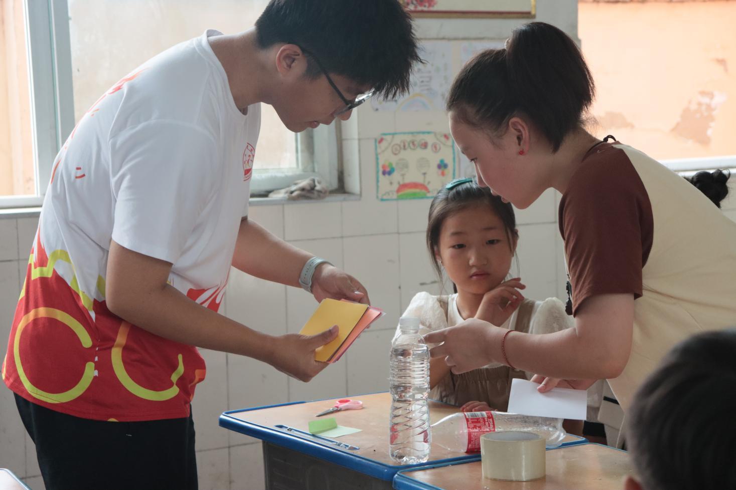 “紙飛機”“水火箭”支教隊隊員們根據各年級同學的實際情況,為他們量身打造了不同的活動內容:一年級與二年級學生進行了樣式各異的紙飛機制作,而三年級,四年級與五年級學生則在支教隊老師的帶領下制作了屬于他們自己的特色水火箭。