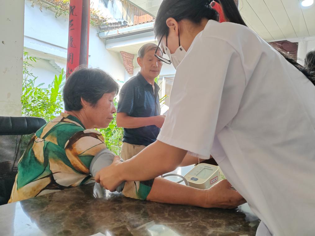 圖為團(tuán)隊(duì)成員為慢性病患者測(cè)量血壓