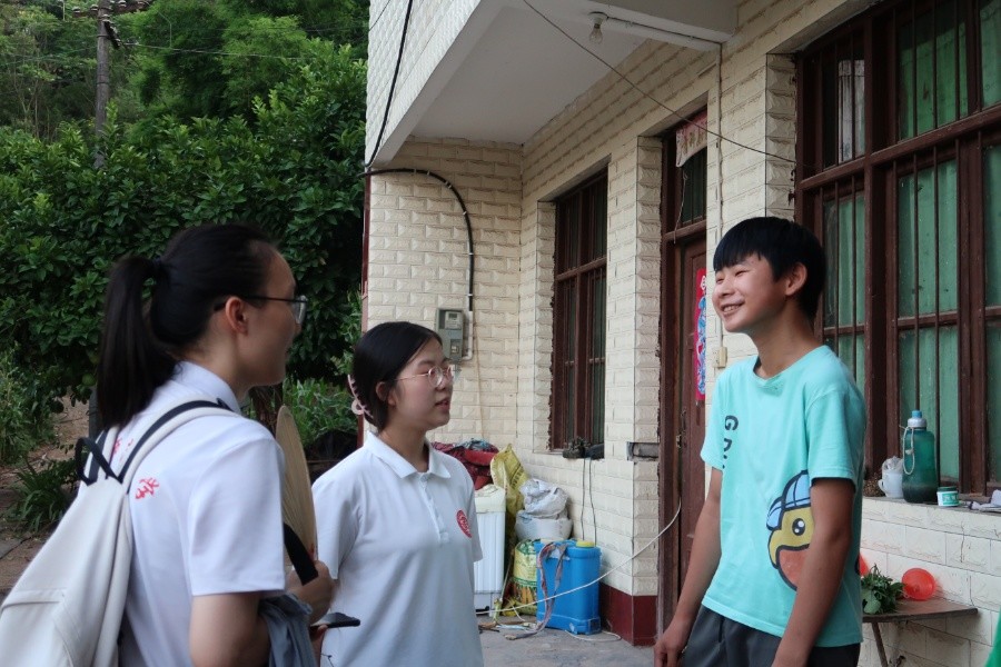 圖為實踐隊員正在向留守兒童的奶奶詢問孩子的生活情況。西華師范大學 唐馨琪 供圖