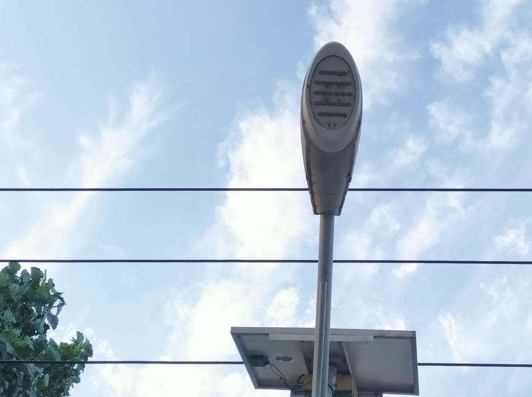 圖為實踐隊員拍攝到的老化的路燈燈頭。 通訊員 褚艷雨 攝