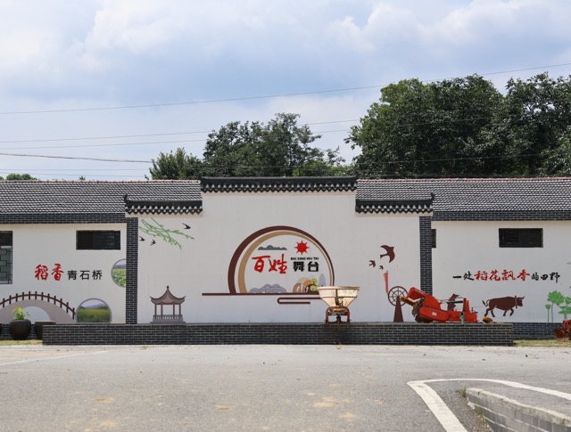 隨著上午實踐的結束,驕陽也斂去了鋒芒,豆大的雨降臨在青石橋村。云銷雨霽,彩徹區明。實踐隊員整裝待發,走入村莊,考察實施鄉村振興戰略、開展美好環境與幸福生活共同締造行動為村民帶來的福祉。自然灣塘被人工修建的木欄桿圍起,其中還可見排水管道。古色古香的小亭子立于水邊,優雅曼妙的美人靠既便于村民休憩,又美觀大方。村中公共廁所與垃圾桶眾多,有專屬保潔員分管衛生,促進了人居環境清靜,這也是清廉村居建設的成果之一。同時,村中還建設了用于公共文化活動的室外舞臺與室內場地,在提高物質生活水平的同時豐富人民精神生活。