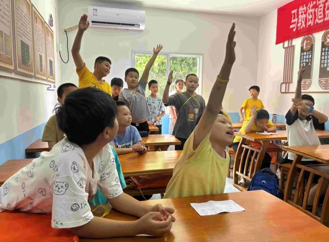 圖為小朋友積極舉手回答宣講團成員所給問題。通訊員 譚靖 攝