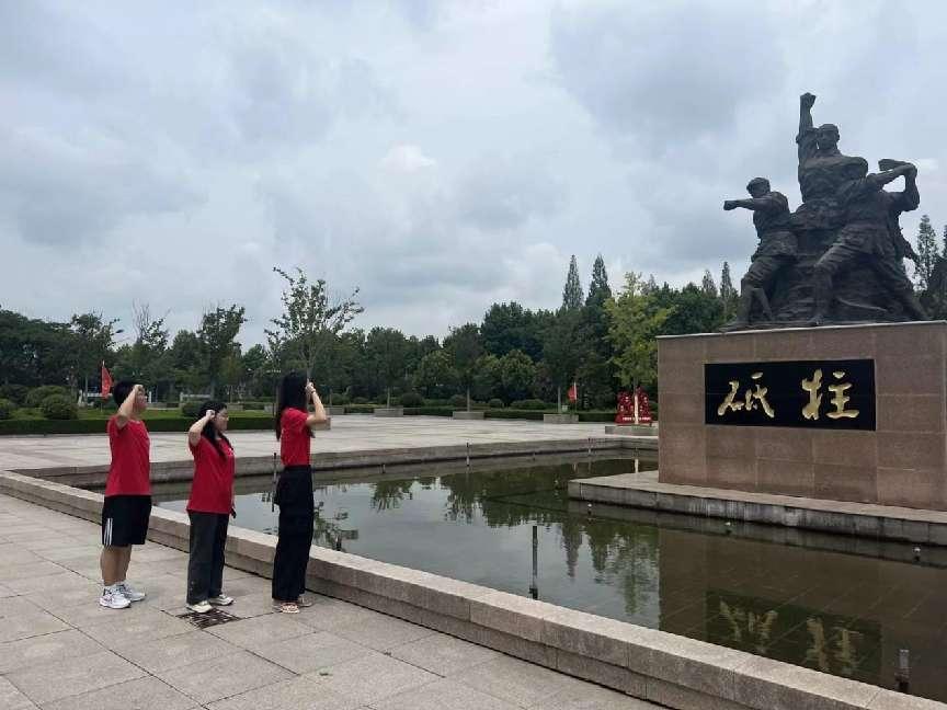 團隊成員首先抵達淮安劉老莊八十二烈士陵園。劉老莊紅色烈士紀念館作為抗日戰爭烈士的紀念館,見證了中國的崢嶸歲月,傳承著紅色精神。園區中心的宏偉雕塑,陵園四周的莊嚴石碑,讓大家肅然起敬。團隊成員們參觀園區,并在“八十二烈士碑”前集體朗讀了淮陰八十二烈士墓碑記,感受著紅色精神的洗禮。