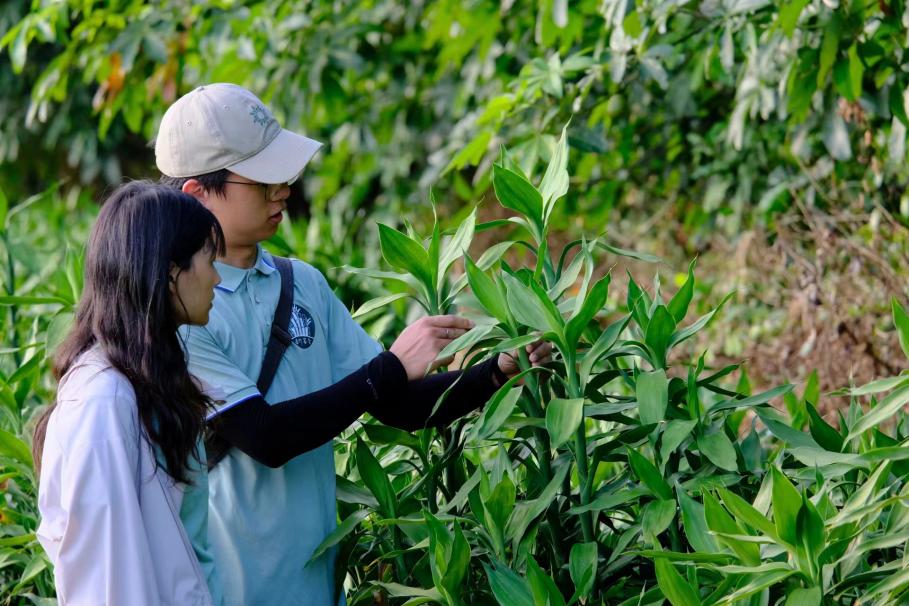(圖為南竹富貴社會實踐團隊員在田中觀察富貴竹)
