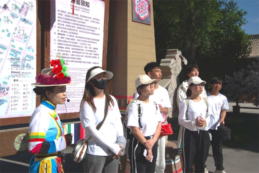 為深入學習宣傳貫徹習近平新時代中國特色社會主義思想,響應“鑄牢中華民族共同體意識”這一重大論斷,2023年7月29日,長安大學赴青海海東“青春聚力促振興,互助共赴新征程”實踐隊于青海海東市互助土族自治縣彩虹部落土族園開展暑期“三下鄉”社會實踐活動。實踐隊主要以了解少數民族土族的歷史淵源、發展歷程、民俗文化、發展展望等內容為實踐目的,展開實踐工作,通過景區引導員的引導和介紹,實踐隊員認識到園區在脫貧攻堅方面中扮演的重要角色。在實踐過程中,實踐隊員還參與到土族的特色民俗活動當中,之如輪子秋、盤繡、安昭舞等,聽取非遺傳承人董思明就土族非物質文化遺產作講解,觀看土族運動員的輪子秋表演,整個實踐過程中,實踐隊隊員與土族同胞打成一片,記錄下了各民族人民融洽相處的瞬間。