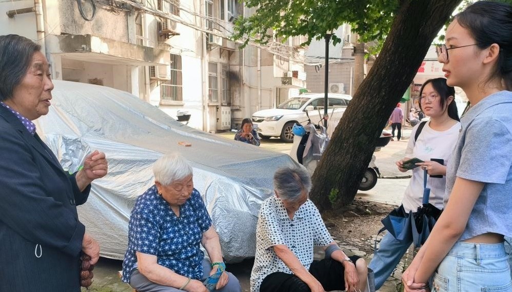 圖為實踐隊員在與老人們交流。通訊員 朱豫睿 供圖