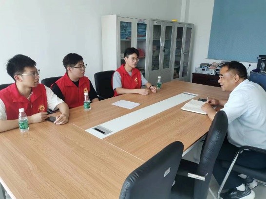 實踐團成員與郝橋村黨支部書記張再廣交流中