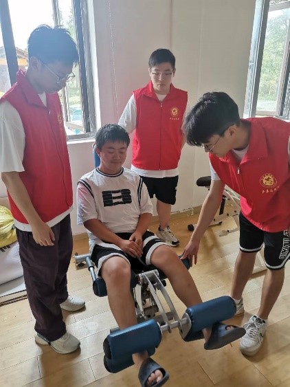 在上午的活動中,實踐團成員們分工合作,有序地進行著“溫馨苑”殘疾人之家的內務整理。他們用心清掃、整理每一個角落,為殘疾人打造一個整潔、舒適的居住環境。隨后,他們精心擦拭運動器材,確保殘疾人在鍛煉時有一個干凈、衛生的空間。在輔助就餐環節,實踐團成員們細心地幫助殘疾人準備食物、搭起餐盤,為他們創造了更方便、愉悅的用餐體驗。通過這個簡單的舉動,實踐團成員們用心讓每一個殘疾人感受到尊重與關愛。