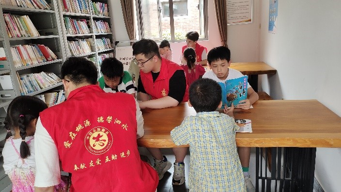 實踐團(tuán)成員正在指導(dǎo)留守兒童閱讀