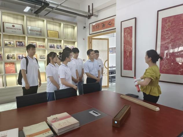 圖為團(tuán)隊(duì)成員們跟隨傳承人參觀紙箋工藝展示品。