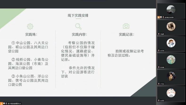 為積極響應推進生態文明建設國家政策,了解并落實青島構建“六個體系”生態文明建設示范區理念,探訪“口袋公園”建設背后的故事,2023年7月4日,山東大學生命科學學院“希青”調研團進行第二次線上會議,針對本次實踐活動的總體安排與青島生態公園建設現狀進行了深入討論。