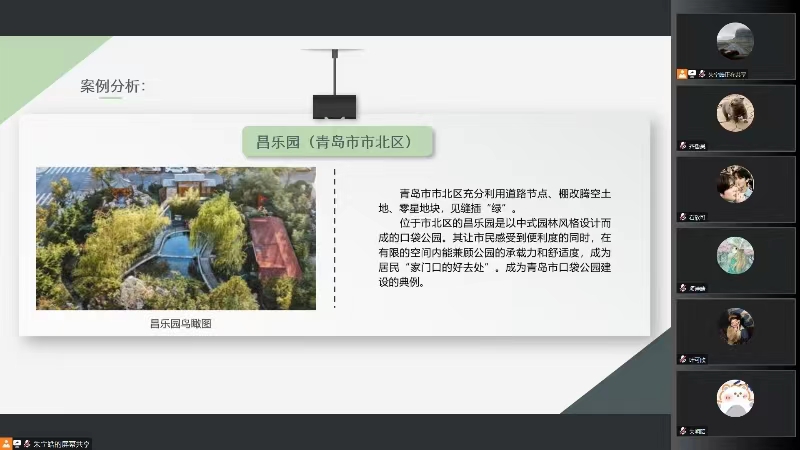 在為期十天左右的青島市城市公園建設狀況的線下調查后,2023年7月13日,山東大學(青島)“希青”團隊隊長朱寧皓以及隊員葉可欣,李天潤,項詩晴,齊魯昊,朱明昭,石欣可等隊員召開第三次線上會議,對這次社會實踐活動調查的昌樂園,佩雷公園進行分析,并總結青島市城市公園建設對策。