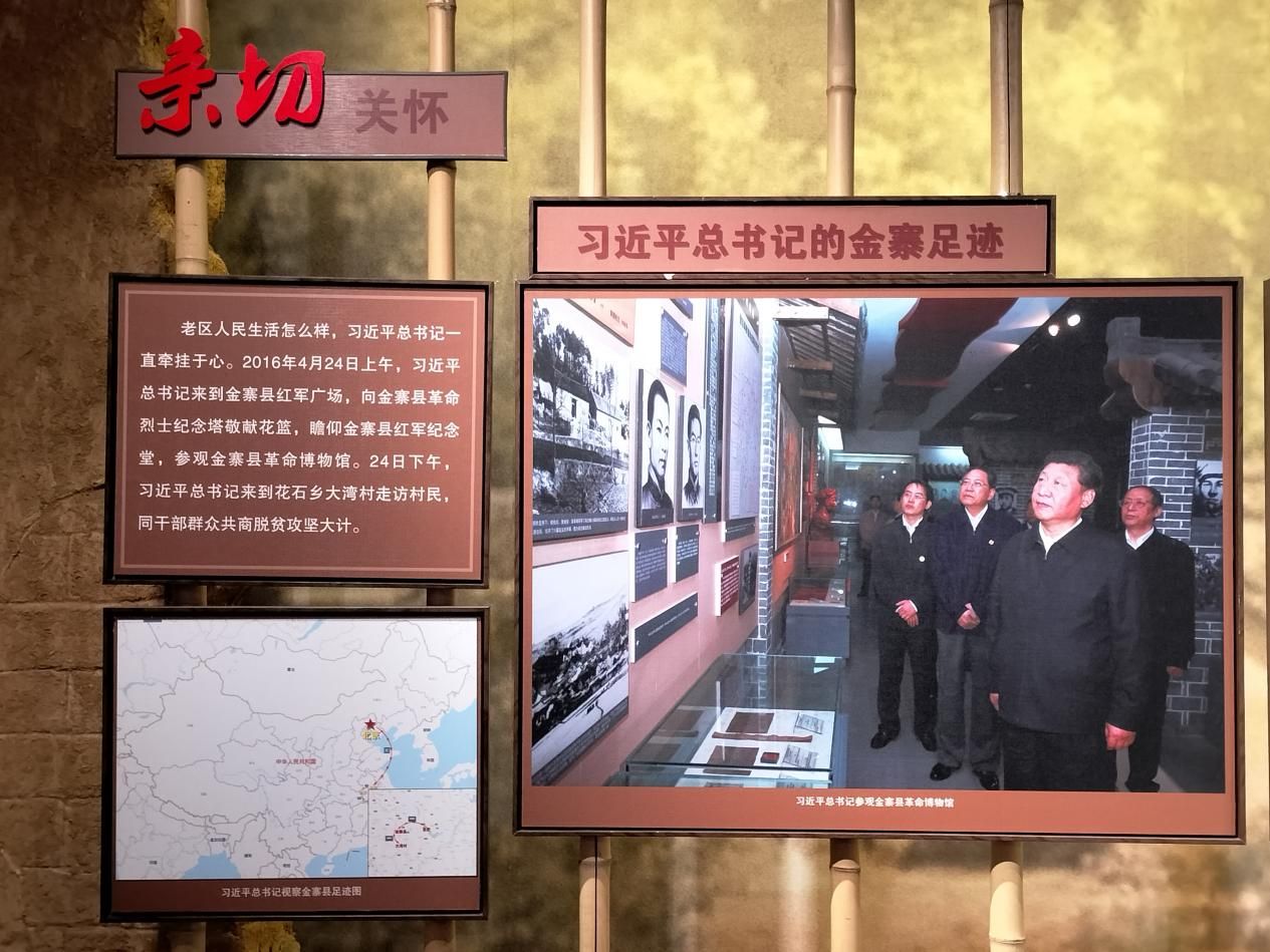 圖為習近平總書記視察金寨的足跡資料。多彩大學生網通訊員 楊晨曦 攝