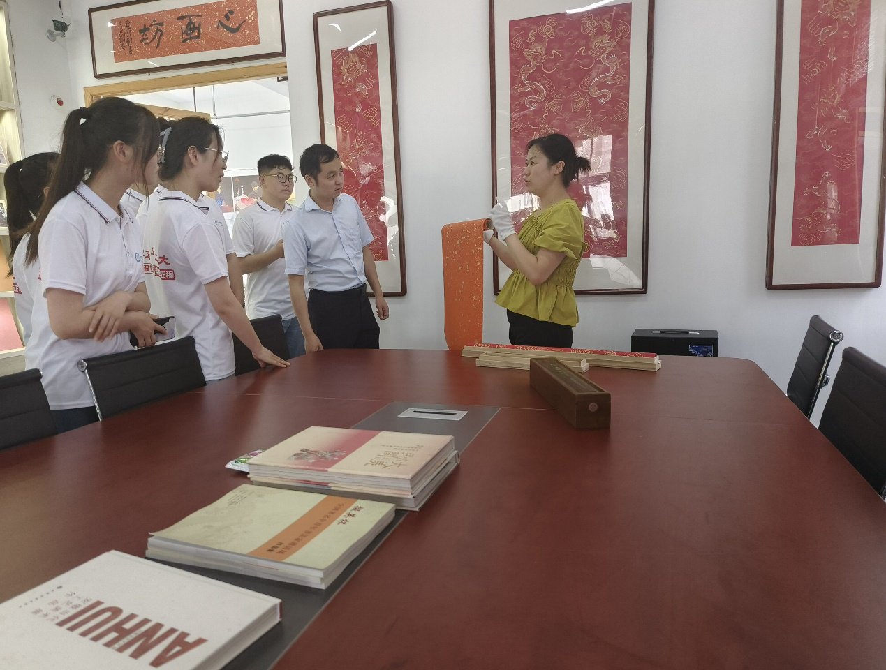 圖為市級非遺傳承人張娟向團隊成員講解不同紙箋名品。通訊員 陳婉如 供圖