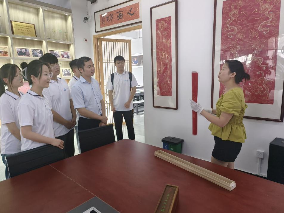 圖為市級傳承人為團隊成員介紹造金銀印花箋。通訊員陳浩楠 供圖