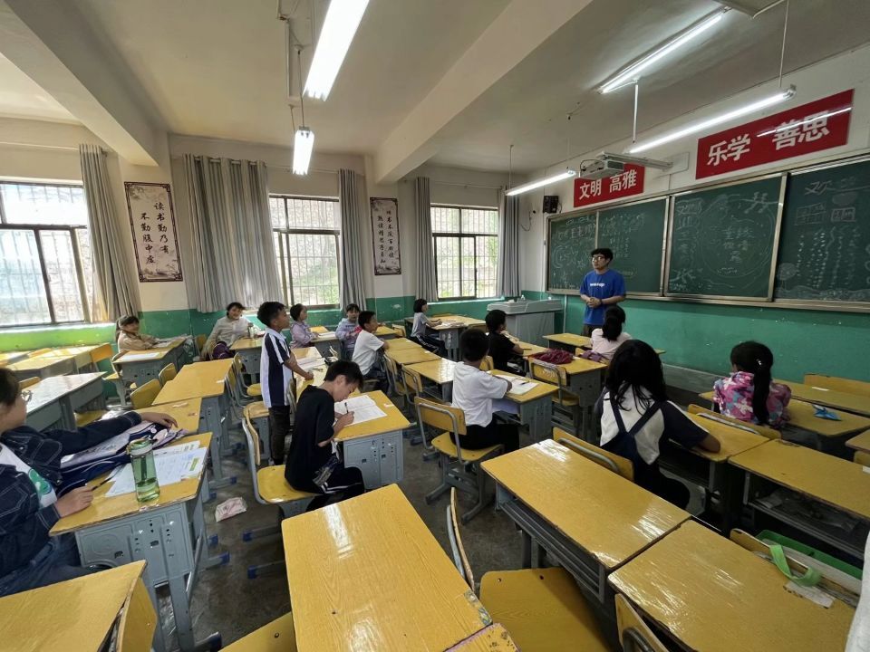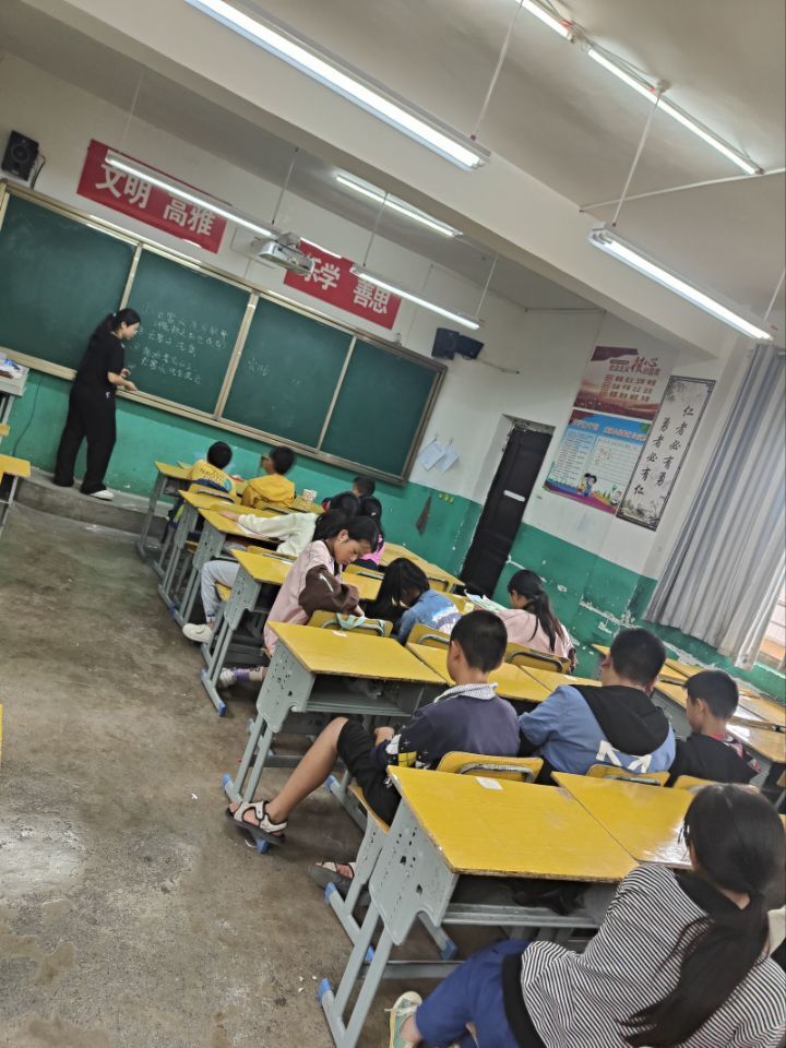運動會結束后,支教團成員針對不同年級分別在六個班設計開展了不同的趣味課程。其中,由王思杰同學帶領五年級一班開展的趣味語文課程,以擊鼓傳花的形式,抽取“幸運者”來背誦古詩,將教學與游戲相結合,活躍的課堂氣氛使師生關系更加融洽,豐富的課堂情景激發了同學們的學習興趣,幫助同學們提高了復習效率。
